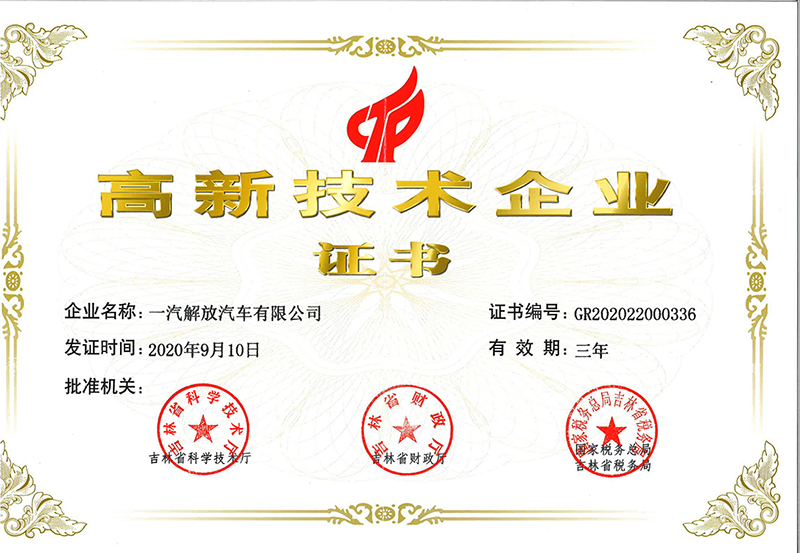 2020吉林省科学手艺厅、吉林省财务厅、国家税务总局吉林省税务局证书